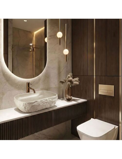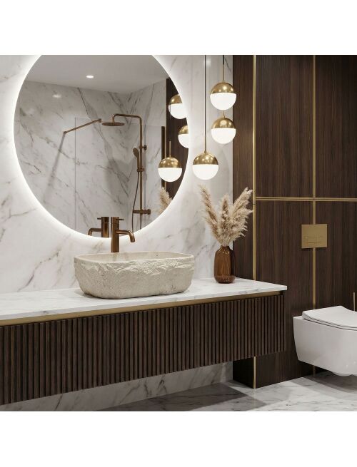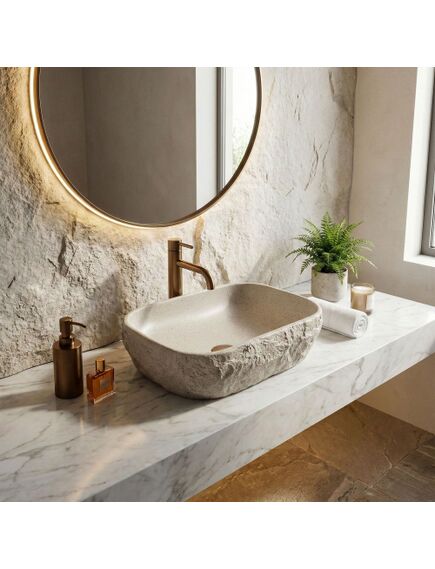 | Odkryj unikalne połączenie natury i nowoczesności w swojej łazience dzięki umywalce nablatowej Rea Bianka w wykończeniu jasny beż. To wyjątkowa propozycja dla osób, które pragną wprowadzić do wnętrza odrobinę luksusu i niebanalnego stylu. Wykonana z dbałością o każdy detal, umywalka Rea nie tylko zachwyca swoim wyglądem, ale również gwarantuje niezawodność podczas codziennego użytkowania.Nasze umywalki nablatowe oferują szeroką gamę korzyści:Zewnętrzna struktura kamienia – nadaje wnętrzu wyjątkowy, prestiżowy charakter i sprawia, że łazienka staje się bardziej stylowa.Gładka powierzchnia wewnątrz – zapewnia błyskawiczne czyszczenie i najwyższy poziom higieny bez zbędnego wysiłku.Satynowe wykończenie – dodaje elegancji i klasy.Unikalna kolorystyka – efekt jasnego beżu z ciemniejszymi detalami świetnie maskuje drobne osady, zachowując estetykę na dłużej.Optymalny, średni rozmiar – gwarantuje pełną wygodę podczas codziennych czynności, idealnie wpasowując się w blaty o różnych wymiarach.