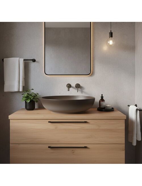 | Wyróżnij strefę umywalkową dzięki umywalce nablatowej Rea Carola Ombre. Model ten to harmonijne połączenie minimalistycznej formy z nowoczesnym wykończeniem. Matowa powierzchnia z tonalnym przejściem barw nadaje ceramice unikalnego charakteru, zachowując przy tym pełną funkcjonalność.Ergonomiczny kształt – owalna, głęboka misa o łagodnych liniach zapewnia komfort użytkowania i ogranicza rozchlapywanie wody, wprowadzając do wnętrza wizualny spokój.Wykończenie Ombre – unikalna, matowa struktura wyróżnia się subtelnym cieniowaniem. Tonalne przejście od jaśniejszych do ciemniejszych brązów nadaje produktowi głębi i elegancji.Ceramika sanitarna – wykonanie z wysokiej jakości ceramiki gwarantuje trwałość, odporność na zarysowania i uszkodzenia. Mimo matowej powierzchni, umywalka jest łatwa w utrzymaniu czystości.Montaż nablatowy – konstrukcja przystosowana do instalacji na blacie lub szafce łazienkowej pozwala na estetyczne wyeksponowanie ozdobnej bryły i oszczędność miejsca wewnątrz mebla.Uniwersalny styl – ciepła kolorystyka ziemi i matowe wykończenie sprawiają, że model ten idealnie wpisuje się w trendy boho, loft oraz nowoczesnego minimalizmu.Umywalka Rea Carola Ombre to propozycja dla osób poszukujących funkcjonalnej elegancji. Prosta, wygodna forma w połączeniu z nietuzinkową kolorystyką sprawia, że produkt ten stanowi wyrazisty, a zarazem subtelny akcent w każdej łazience. |
