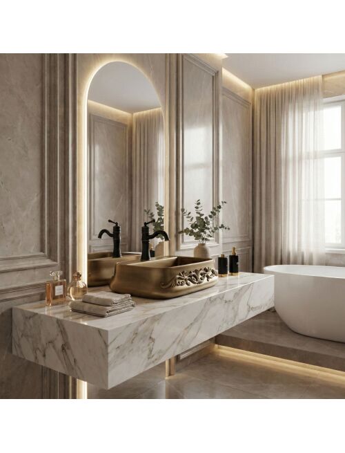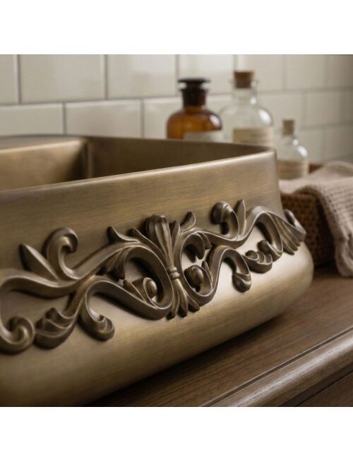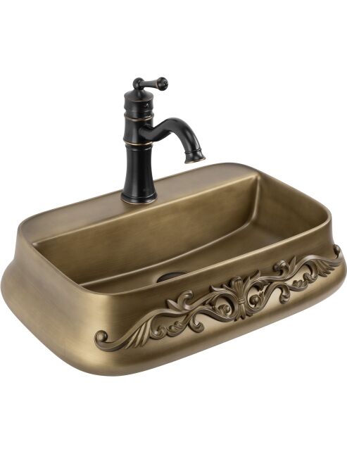 | Wybierz umywalkę nablatową ceramiczną Rea Castel, jeśli szukasz wyrazistego, klasycznego akcentu do swojej łazienki. Ten model to świetna propozycja dla miłośników stylu retro, vintage oraz rustykalnego, łącząca funkcjonalną formę z niezwykle efektownym, bogatym zdobnictwem.Wyjątkowe zdobienia (relief) – front umywalki zdobi wypukły, florystyczny ornament. To detal, który od razu przyciąga wzrok i stanowi główny punkt dekoracyjny, nadając jej eleganckiego, rzemieślniczego charakteru.Wykończenie w odcieniu starego mosiądzu – powierzchnia ceramiki zyskała unikalny kolor przecieranego brązu. Ten celowy zabieg wizualny świetnie podkreśla styl vintage i dodaje całej bryle szlachetności.Półka z otworem na baterię – model Castel posiada zintegrowaną półkę z fabrycznie wyciętym otworem. Pozwala to na wygodny montaż baterii stojącej bezpośrednio na umywalce, co chroni blat przed zachlapaniem i ułatwia codzienne sprzątanie.Trwała ceramika sanitarna – umywalka wykonana jest z klasycznej, solidnej ceramiki. Gwarantuje to łatwość w utrzymaniu czystości, gładkość powierzchni wewnątrz oraz odporność na odbarwienia.Montaż nablatowy – instalacja bezpośrednio na szafce lub blacie pozwala w pełni wyeksponować ozdobną obudowę i płynne, wyprofilowane krawędzie umywalki.Umywalka Rea Castel to wyrazisty detal, który całkowicie odmieni charakter aranżacji. Jej bogata ornamentyka i ciepła kolorystyka doskonale wpiszą się we wnętrza urządzone w stylu klasycznym, dworkowym czy eklektycznym, tworząc spójną i stylową przestrzeń. |