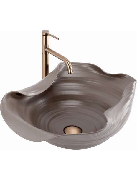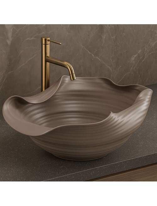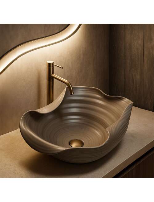 | Prezentowana umywalka należy do autorskiej kolekcji Hand Made Art marki Rea – Łazienka z Wyobraźnią. To wyjątkowa linia produktów formowanych całkowicie ręcznie, gdzie każdy egzemplarz powstaje poza schematem seryjnej produkcji. W efekcie każda sztuka zachowuje indywidualny charakter, widoczny w subtelnych różnicach kształtu, struktury i wykończenia.