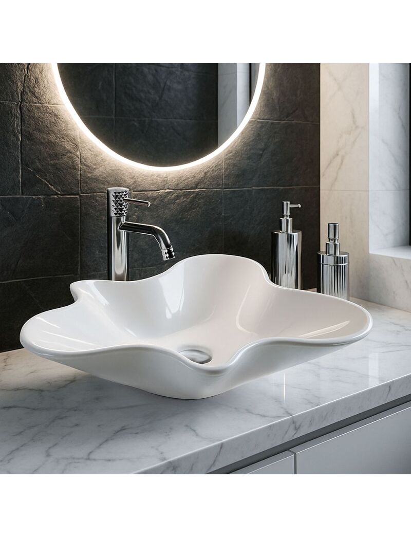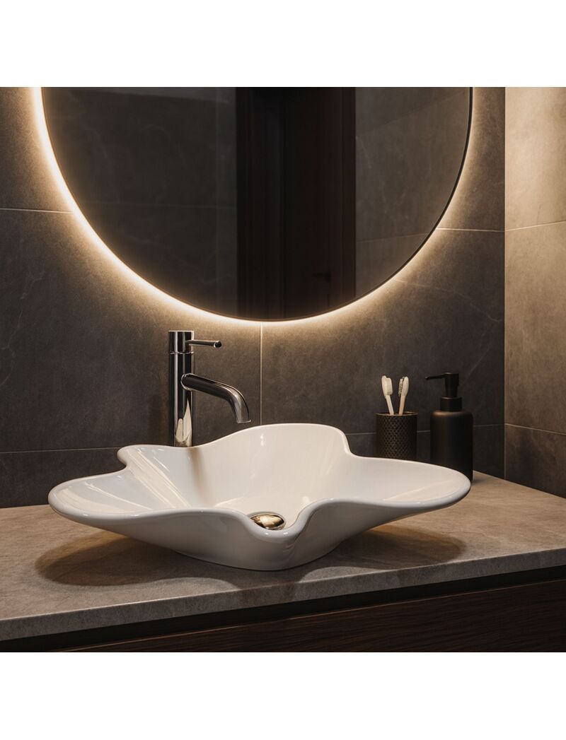 Umywalka nablatowa Izolda to wyjątkowa propozycja dla osób ceniących nowoczesny design i unikalne kształty. Jej nieregularna forma inspirowana naturalnymi liniami sprawia, że stanowi efektowny element dekoracyjny, który odmieni charakter każdej łazienki.