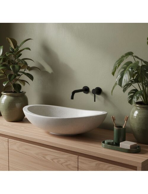 | Chcesz wprowadzić do swojej łazienki stylowy i nowoczesny element? Odkryj umywalkę nablatową Rea Leona, wykonaną z materiału Artificial Stone. Ten zaawansowany kompozyt, będący mieszanką naturalnego kruszywa i żywic, łączy w sobie wygląd naturalnego kamienia z doskonałą trwałością. Jej elegancki, owalny kształt i unikalna, nakrapiana struktura dodadzą wnętrzu nowoczesnego charakteru.Materiał: Artificial Stone (sztuczny kamień kompozytowy) – specjalne połączenie gwarantujące wyjątkową trwałość i odporność.Wysoka odporność – kompozyt jest znacznie bardziej odporny na zarysowania, uderzenia i plamy niż tradycyjna ceramika.Idealnie higieniczna powierzchnia – materiał jest nieporowaty, dzięki czemu nie wchłania brudu ani wilgoci oraz zapobiega rozwojowi bakterii.Wygląd naturalnego kamienia – unikalna, nakrapiana struktura nadaje umywalce niepowtarzalny wygląd i pasuje do nowoczesnych wnętrz.Montaż nablatowy – przeznaczona do instalacji na blacie łazienkowym lub szafce, co daje duże możliwości aranżacyjne.Minimalistyczny design – brak otworu na baterię i przelewu podkreśla czystą, nowoczesną formę i jest dedykowany do baterii ściennych lub wysokich nablatowych.Umywalka nablatowa Rea Leona to doskonały wybór dla osób ceniących unikalny design. Jej kompozytowa budowa zapewnia nie tylko piękny wygląd, ale także łatwość w utrzymaniu i wysoką odporność na uszkodzenia. |