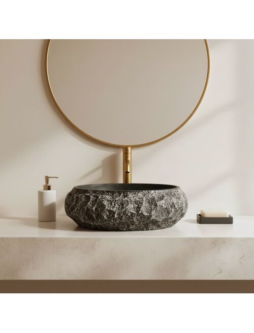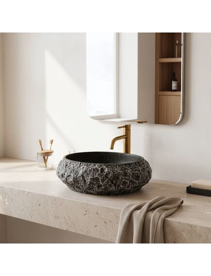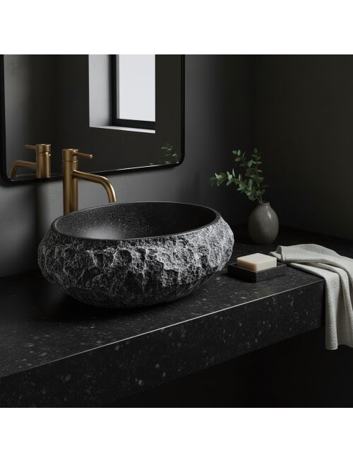 | Wyróżnij strefę umywalkową dzięki umywalce nablatowej Rea Mika Garbo Black. To model o nowoczesnym charakterze, który przykuwa wzrok interesującym kontrastem faktur. Zewnętrzna, ciemna powłoka o wyraźnej strukturze kamienia łączy się tu z idealnie gładkim wnętrzem. Całość wykonana jest z trwałego kompozytu Artificial Stone.Struktura Garbo Black – zewnętrzna powierzchnia misy posiada chropowate, matowe wykończenie z nieregularnymi, jasnymi przetarciami imitującymi naturalny kamień. Nadaje to produktowi surowego, industrialnego stylu.Materiał Artificial Stone – zastosowanie nowoczesnego kompozytu sprawia, że umywalka jest solidna i odporna na uszkodzenia, a jednocześnie lżejsza i cieplejsza w dotyku niż tradycyjny kamień.Gładkie wnętrze – środek misy jest wypolerowany i gładki, co zapewnia łatwość czyszczenia i komfort użytkowania, kontrastując z surową obudową.Wysoka odporność – zastosowany materiał wyróżnia się wyjątkową odpornością na uszkodzenia mechaniczne, wysokie temperatury oraz działanie wilgoci, gwarantując nienaganny wygląd przez lata.Montaż nablatowy – umywalka przystosowana jest do instalacji na blacie lub szafce, co pozwala w pełni wyeksponować jej dekoracyjną bryłę.Umywalka Rea Mika Garbo to świetny wybór do łazienek utrzymanych w stylu loftowym i nowoczesnym. Łączy w sobie ciekawy design imitujący kamień z pełną funkcjonalnością nowoczesnej armatury, stanowiąc mocny akcent w aranżacji wnętrza. |