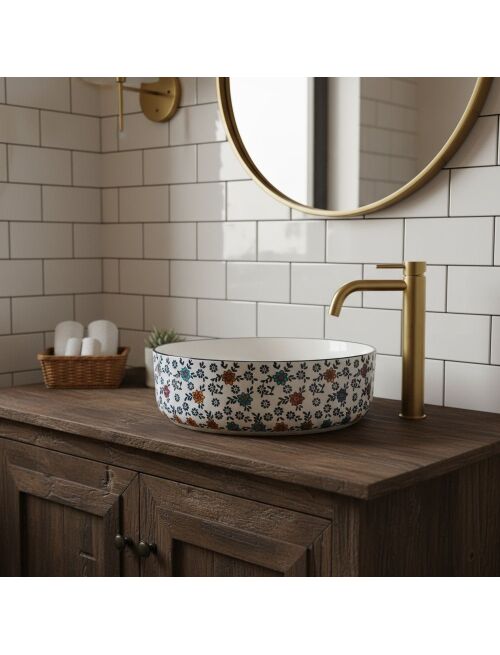 | Szukasz umywalki, która stanie się ozdobą Twojej łazienki? Odkryj model umywalki nablatowej Rea Stefania, który łączy w sobie gładkie, matowe wykończenie z unikalnym, wielokolorowym wzorem kwiatowym. Wykonana z wysokiej jakości ceramiki sanitarnej, ta okrągła umywalka jest idealnym wyborem dla osób ceniących oryginalny, rustykalny design i wysoką jakość wykonania.Matowe wykończenie – nadaje umywalce nowoczesny i elegancki charakter, który jest przyjemny w dotyku i łatwy w czyszczeniu.Unikalny wzór kwiatowy – wielokolorowe zdobienia na zewnętrznej powierzchni sprawiają, że umywalka jest centralnym punktem dekoracyjnym każdej łazienki.Wysokiej jakości ceramika sanitarna – gwarantuje odporność na codzienne użytkowanie oraz trwałość koloru i wykończenia.Montaż nablatowy – pozwala na pełne wyeksponowanie piękna wzorzystego korpusu na dowolnym blacie łazienkowym.Okrągły kształt misy – klasyczna i ponadczasowa forma, która jest zarówno elegancka, jak i praktyczna w codziennym użytkowaniu.Brak otworu na baterię – konstrukcja dedykowana do montażu z bateriami wysokimi (stojącymi) lub bateriami podtynkowymi (ściennymi).Brak otworu przelewowego – podkreśla minimalistyczny i gładki design wewnętrznej misy, zapewniając idealnie gładką powierzchnię.Umywalka nablatowa Rea Stefania to doskonały wybór dla osób, które cenią sobie oryginalność i chcą wprowadzić do wnętrza odrobinę koloru w stylowym, matowym wydaniu.. |