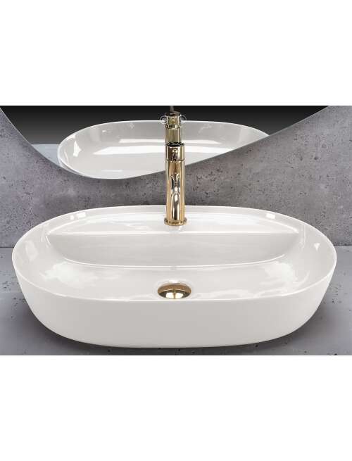 Umywalka posiada półkę z otworem na baterię, co czyni ją jeszcze bardziej funkcjonalną. Wykonana z ceramiki sanitarnej najwyższej jakości, jest trwała, odporna na uszkodzenia i łatwa w utrzymaniu czystości. Montaż na blacie pozwala na maksymalne wykorzystanie przestrzeni w łazience, tworząc jednocześnie elegancką, minimalistyczną kompozycję.