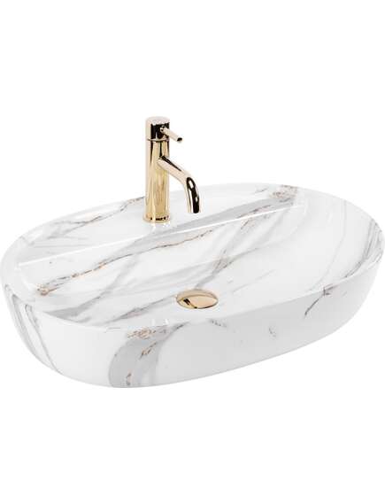 | Umywalka Rea Aura w interesującym, eliptycznym kształcie doskonale dopełni każde nowoczesne wnętrze. Jest przystosowana do montażu na blacie bądź szafce. Umywalka w odcieniu białego marmuru doskonale podkreśli luksusowy charakter każdej łazienki, dodając jej wyrafinowanego stylu.