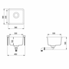 Izlietnes ārējais izmēri: 380 x 380 mm | Izlietnes iekšējais izmērs: 330 x 330 x 190 mm | Komplektā: sifons AQF-001V vai AQF-002V.
