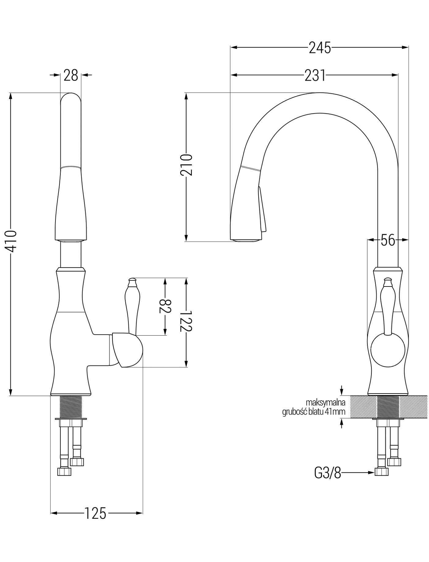 Iztekas diapazons: 231 mm