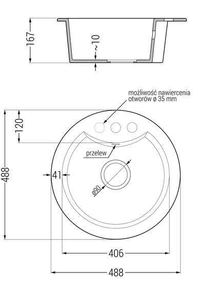 Viens papildu caurums pašvītņojošai skrūvei ø35.