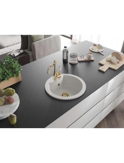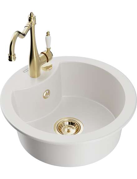 Mexen Diego zlewozmywak granitowy 1-komorowy z baterią kuchenną Carla, biały - 6512-20-670700-50