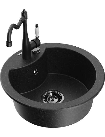 Mexen Diego zlewozmywak granitowy 1-komorowy z baterią kuchenną Carla, czarny/srebrny metalik - 6512-73-670700-70-B