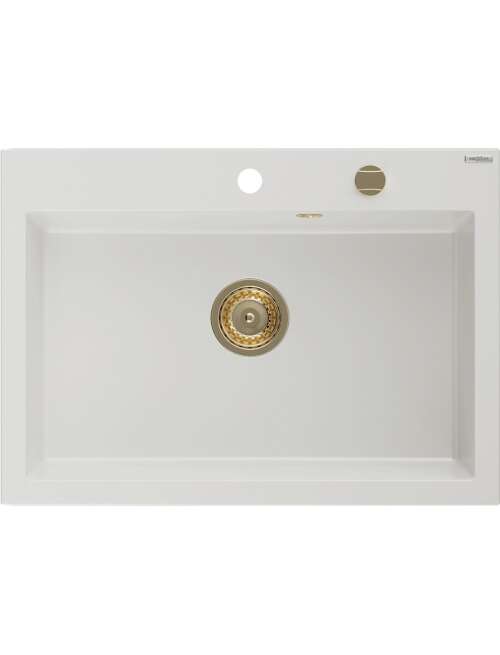 Specyfikacja produktu:Rozmiar: 700x500x210 mm Głębokość komory: 195 mm Wymiary komory: 630x380 mm Średnica odpływu: ø90 mm Rodzaj: 1-komorowy Typ: Wpuszczany w blat Materiał: Granit Kolor: Biały Wykończenie syfonu: Złoty Otwór przelewowy: Tak Otwór na baterie: Tak Syfon automatyczny w komplecie Wysoka odporność na zarysowania i przebarwienia Odporność na szok termiczny Powierzchnia ułatwiająca czyszczenie Jeden dodatkowy podfrezowany otwór do samodzielnego wybicia ø35 |