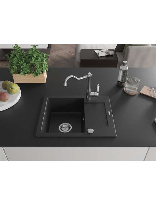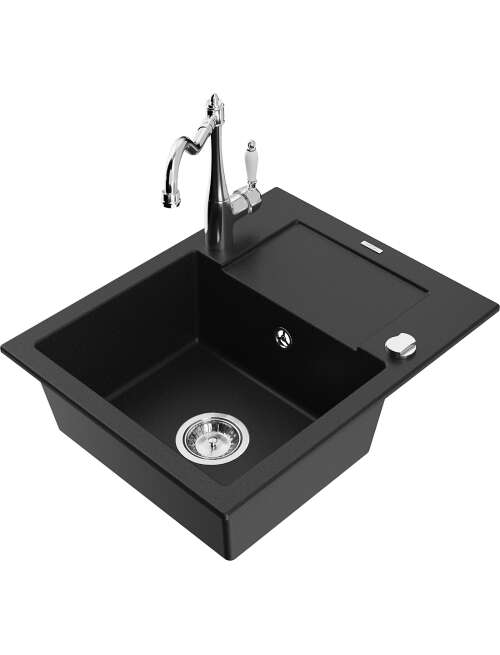 Dane techniczne: Zlewozmywak: Rozmiar: 576x465x174 mm Głębokość komory: 164 mm Wymiary komory: 395x320 mm Średnica odpływu: ø90 mm Typ: 1-komorowy z krótkim ociekaczem Rodzaj: Wpuszczany w blat Kolor: Czarny Wykończenie syfonu: Chrom Materiał: Granit (80% granitowe 20% żywice) Otwór przelewowy: Tak Otwory: ( bateria, automat ) 2 Montaż: Uniwersalny, możliwość montażu z ociekaczem po lewej lub prawej stronie Wysoka odporność na zarysowania i przebarwienia Odporność na szok termiczny Powierzchnia ułatwiająca czyszczenie Dwa dodatkowe podfrezowane otwory do samodzielnego wybicia ø35 Bateria kuchenna: Materiał: Mosiądz Kolor: Chrom Głowica: Ceramiczna Perlator: Tak Typ: Jednouchwytowa Wysokość baterii: 290 mm Zasięg wylewki: 260 mm |