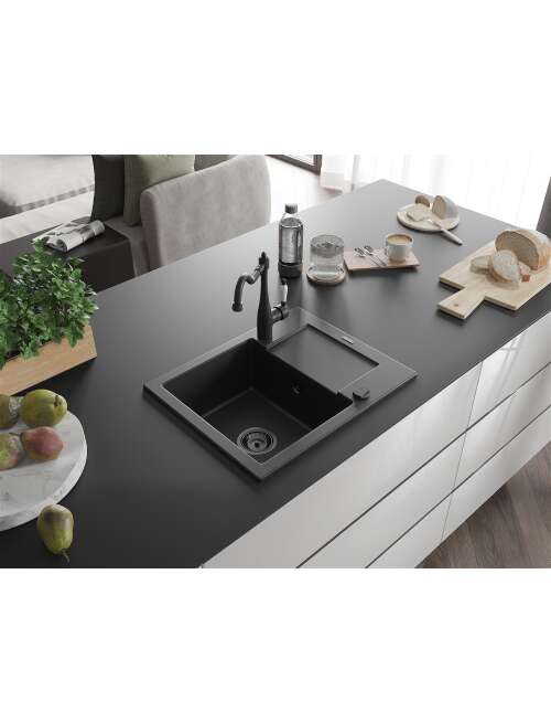 Dane techniczne: Zlewozmywak: Rozmiar: 576x465x174 mm Głębokość komory: 164 mm Wymiary komory: 395x320 mm Średnica odpływu: ø90 mm Typ: 1-komorowy z krótkim ociekaczem Rodzaj: Wpuszczany w blat Kolor: Czarny Wykończenie syfonu: Czarny Materiał: Granit (80% granitowe 20% żywice) Otwór przelewowy: Tak Otwory: ( bateria, automat ) 2 Montaż: Uniwersalny, możliwość montażu z ociekaczem po lewej lub prawej stronie Wysoka odporność na zarysowania i przebarwienia Odporność na szok termiczny Powierzchnia ułatwiająca czyszczenie Dwa dodatkowe podfrezowane otwory do samodzielnego wybicia ø35 Bateria kuchenna: Materiał: Mosiądz Kolor: Czarny Głowica: Ceramiczna Perlator: Tak Typ: Jednouchwytowa Wysokość baterii: 290 mm Zasięg wylewki: 260 mm |