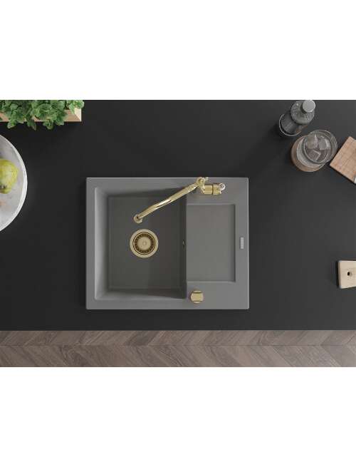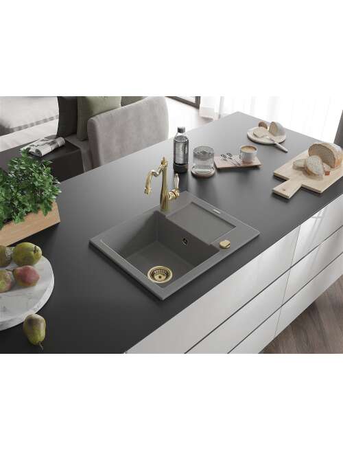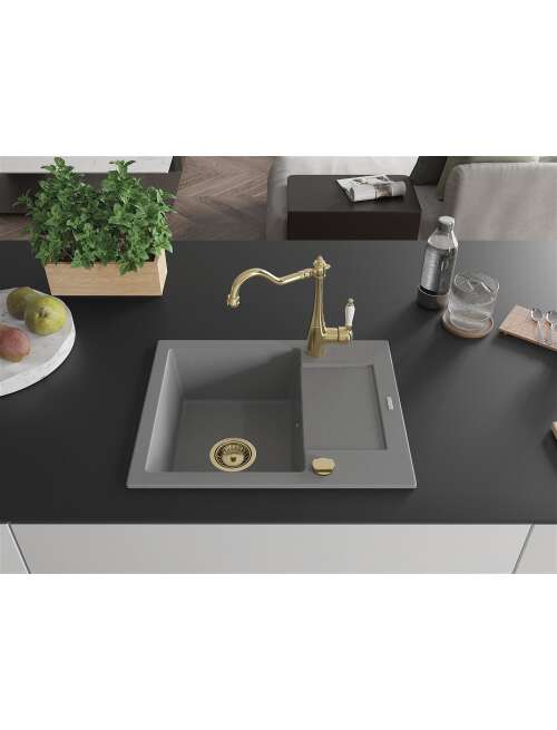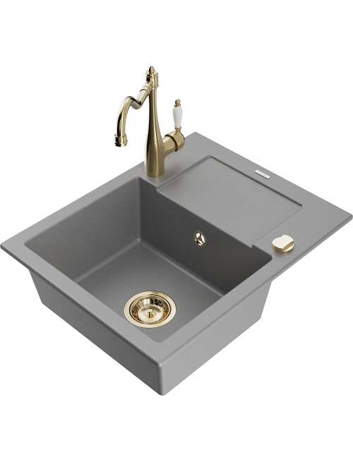 Mexen Enzo zlewozmywak granitowy 1-komorowy z ociekaczem i baterią kuchenną Carla, szary - 6506-71-670700-50