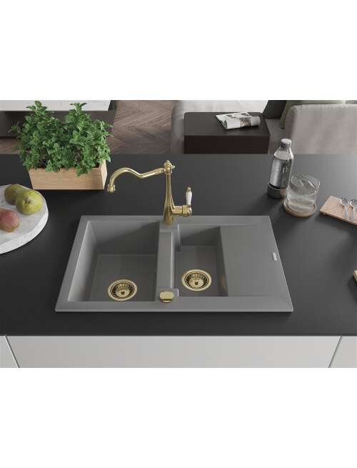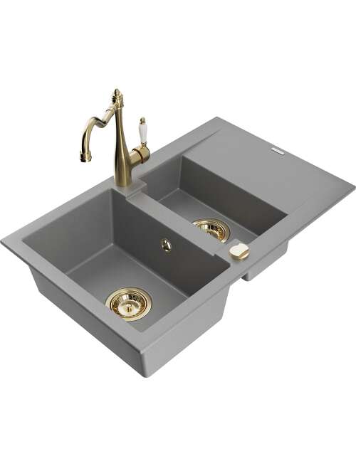 Mexen Gaspar zlewozmywak granitowy 1,5-komorowy z ociekaczem i baterią kuchenną Carla, szary - 6507-71-670700-50