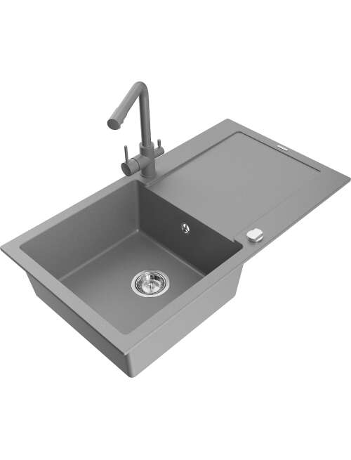 Mexen Leo zlewozmywak granitowy 1-komorowy z ociekaczem i baterią kuchenną Duero, szary - 6501-71-671600-71