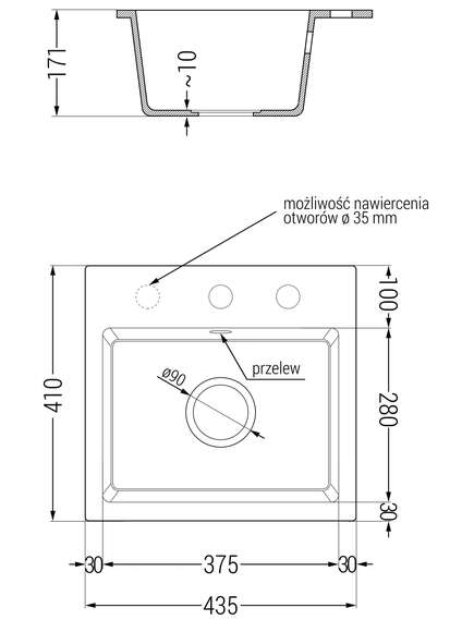 Viens papildu caurums pašvītņojošai skrūvei ø35.