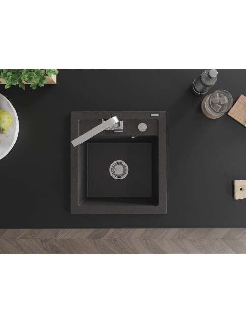 Dane techniczne: Zlewozmywak: Rozmiar: 520x490x210 mm Głębokość komory: 200 mm Wymiary komory: 410x360 mm Średnica odpływu: ø90 mm Typ: 1-komorowy Rodzaj: Wpuszczany w blat Kolor: Czarny nakrapiany Wykończenie syfonu: Chrom Materiał: Granit (80% kruszywo granitowe 20% żywice) Otwór przelewowy: Tak Otwory: ( bateria, automat ) 2 Wysoka odporność na zarysowania i przebarwienia Odporność na szok termiczny Powierzchnia ułatwiająca czyszczenie Jeden dodatkowy podfrezowany otwór do samodzielnego wybicia ø35 Bateria kuchenna: Materiał: Mosiądz Kolor: Chrom Głowica: Ceramiczna Perlator: Tak Typ: Jednouchwytowa Wysokość baterii: 290 mm Zasięg wylewki: 220 mm |
