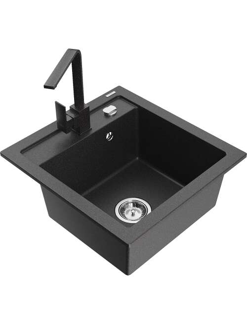 Dane techniczne: Zlewozmywak: Rozmiar: 520x490x210 mm Głębokość komory: 200 mm Wymiary komory: 410x360 mm Średnica odpływu: ø90 mm Typ: 1-komorowy Rodzaj: Wpuszczany w blat Kolor: Czarny nakrapiany Wykończenie syfonu: Chrom Materiał: Granit (80% kruszywo granitowe 20% żywice) Otwór przelewowy: Tak Otwory: ( bateria, automat ) 2 Wysoka odporność na zarysowania i przebarwienia Odporność na szok termiczny Powierzchnia ułatwiająca czyszczenie Jeden dodatkowy podfrezowany otwór do samodzielnego wybicia ø35 Bateria kuchenna: Materiał: Mosiądz Kolor: Czarny nakrapiany Głowica: Ceramiczna Perlator: Tak Typ: Jednouchwytowa Wysokość baterii: 290 mm Zasięg wylewki: 220 mm |