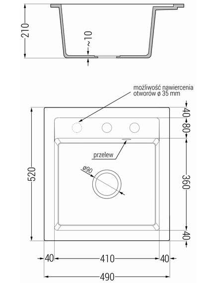 Viens papildu caurums pašvītņojošai skrūvei ø35.