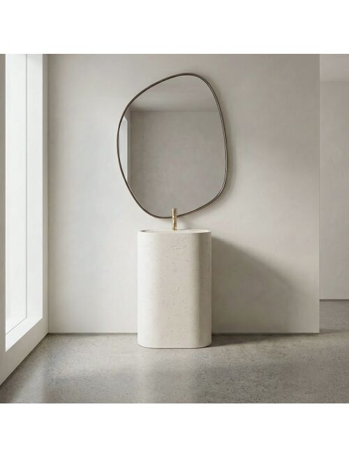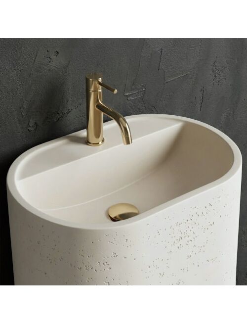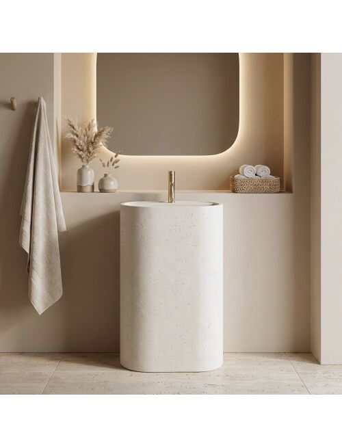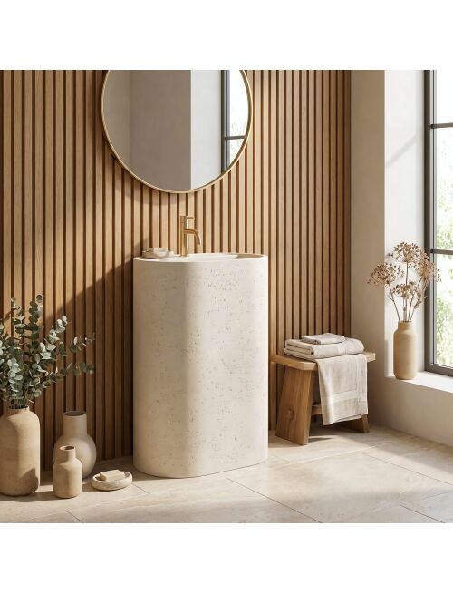 | Wprowadź do swojej łazienki surowy, industrialny klimat dzięki umywalce wolnostojącej Rea Salento. Ten monolityczny model, wykonany z niezwykle trwałego kompozytu Artificial Stone, zachwyca wykończeniem imitującym beton architektoniczny. To idealne rozwiązanie dla miłośników stylu loftowego, łączące ascetyczny design z nowoczesną funkcjonalnością.Estetyka betonu architektonicznego – unikalna, porowata faktura i matowe wykończenie wiernie naśladują surowy beton, nadając wnętrzu nowoczesnego charakteru.Materiał Artificial Stone – wysokiej jakości sztuczny kamień (kompozyt), który charakteryzuje się jednorodną strukturą, wyjątkową trwałością oraz odpornością na uszkodzenia mechaniczne.Zintegrowana półka z otworem na baterię – misa posiada wyprofilowane wgłębienie z gotowym otworem, co pozwala na wygodny montaż baterii stojącej bezpośrednio na produkcie.Konstrukcja wolnostojąca – jednolita, masywna bryła montowana na posadzce stanowi mocny akcent wizualny w każdej aranżacji.Otwór rewizyjny – w tylnej części kolumny znajduje się otwór, który umożliwia łatwe podłączenie syfonu i zapewnia dostęp serwisowy do instalacji hydraulicznej.Umywalka wolnostojąca Rea Salento to doskonały wybór dla tych, którzy szukają kompromisu między surowym designem a komfortem użytkowania. Dzięki zintegrowanej półce na baterię oraz otworowi serwisowemu, instalacja jest prosta, a efekt wizualny – spójny i elegancki. Solidny kompozyt gwarantuje, że produkt zachowa swoje walory estetyczne przez długie lata. |