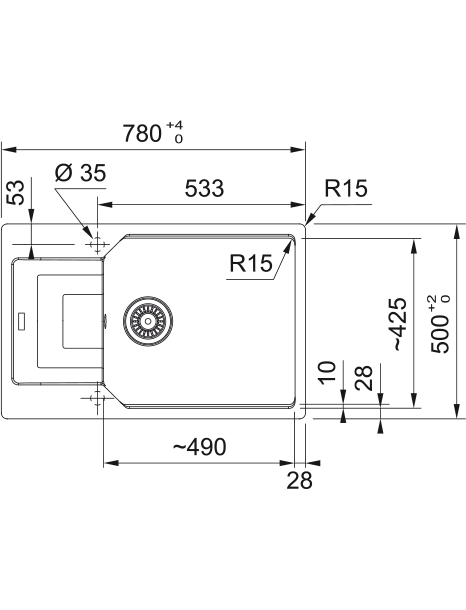Izlietne 1: platums 425 mm