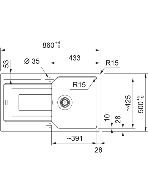 Izlietne 1: garums 391 mm