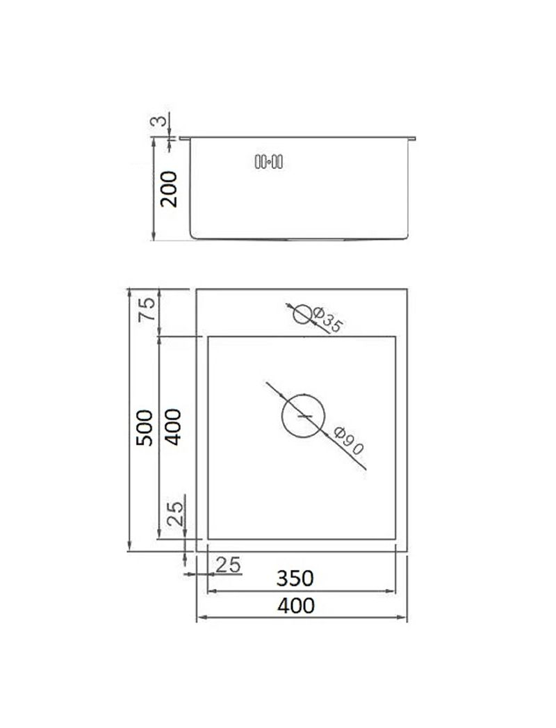 Izlietnes izmērs: platums 40 cm, dziļums 50 cm, augstums 22 cm. Tvertnes izmērs: platums 35 cm, dziļums 40 cm, augstums 20 cm. Ražošanas īpatnību dēļ izlietnes ģeometrijā ir pieļaujama nobīde 1-3 mm. Izlietne tiek ielikta uz hermētiķi un piespiesta. Ar šādu uzstādīšanas metodi izlietnes malas būs cieši piestiprinātas galda virsmai.
