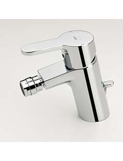 Bidē jaucējkrāns ar noteces aizvaru. Ar iebūvēta ierobežotāja mehānismu var regulēt maksimālo ūdens plūsmu un temperatūru.F – ar lokaniem pievadiem.