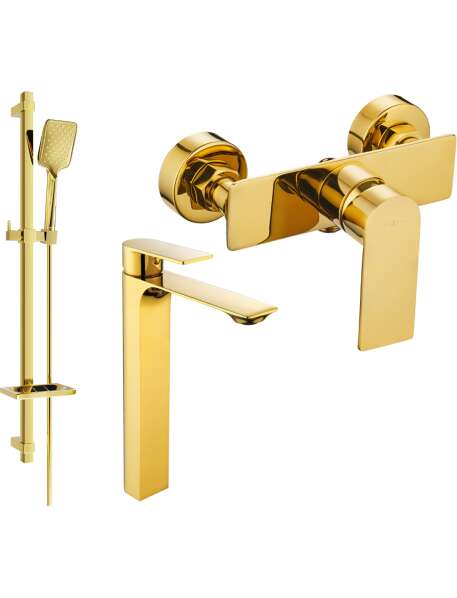 Specyfikacja produktu:Materiał baterii umywalkowej: Mosiądz Wykończenie baterii: Złoty Głowica: Ceramiczna Wysokość: 295 mm Zasięg wylewki: 159 mm Materiał baterii prysznicowej: Mosiądz Wykończenie baterii: Złoty Głowica: Ceramiczna Materiał drążka: Stal nierdzewna, ABS Wykończenie drążka: Złoty Wysokość: 800 mm Szerokość drążka: 22 mm Odległość od ściany: 105 mm Mydelniczka Przesuwny uchwyt na słuchawkę Regulowane uchwyty montażowe Materiał słuchawki: Tworzywo sztuczne Wykończenie słuchawki: Złoty Ilość funkcji: 1 Wysokość słuchawki: 225 mm Szerokość główki: 80 mm Materiał węża: PVC Wykończenie węża: Złoty Długość węża: 150 cm Mosiężne końcówki Gładka powierzchnia ułatwia utrzymanie w czystości Obrotowe końcówki zapobiegają skręcaniu Elastyczny materiał wytrzymały na rozciąganie oraz zginanie |