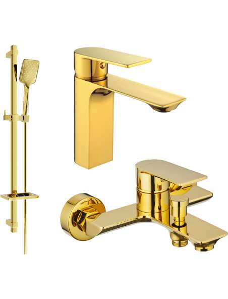Specyfikacja produktu:Materiał baterii umywalkowej: Mosiądz Głowica: Ceramiczna Wykończenie baterii: Złoty Wysokość: 154 mm Zasięg wylewki: 104 mm Materiał baterii wannowej: Mosiądz Głowica: Ceramiczna Wykończenie baterii: Złoty Zasięg wylewki: 167 mm Materiał drążka: Stal nierdzewna, ABS Wykończenie drążka: Złoty Wysokość: 800 mm Szerokość drążka: 22 mm Odległość od ściany: 105 mm Mydelniczka Przesuwny uchwyt na słuchawkę Regulowane uchwyty montażowe Materiał słuchawki: Tworzywo sztuczne Wykończenie słuchawki: Złoty Ilość funkcji: 1 Wysokość: 225 mm Szerokość główki: 80 mm Materiał węża: PVC Wykończenie węża: Złoty Długość węża: 150 cm Gładka powierzchnia ułatwia utrzymanie w czystości Obrotowe końcówki zapobiegają skręcaniu Elastyczny materiał wytrzymały na rozciąganie oraz zginanie |