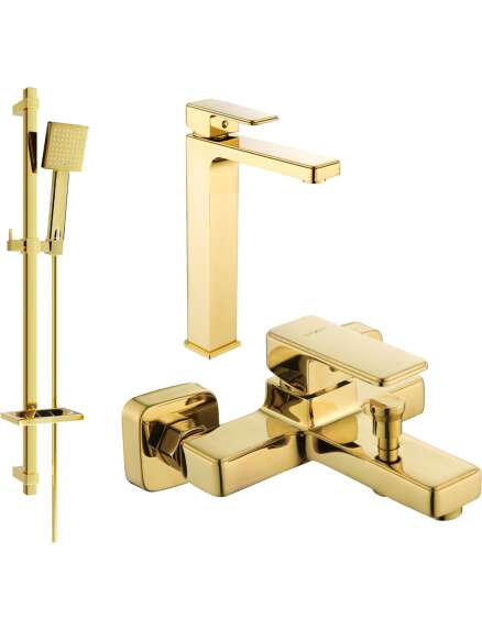 Specyfikacja produktu:Materiał baterii umywalkowej: Mosiądz Wykończenie: Złoty Głowica: Ceramiczna Perlator: Tak Wysokość: 290 mm Zasięg wylewki: 200 mm Materiał baterii wannowej: Mosiądz Wykończenie: Złoty Głowica: Ceramiczna Perlator: Tak Zasięg wylewki: 140 mm Materiał drążka: Stal nierdzewna, ABS Wykończenie drążka: Złoty Wysokość: 800 mm Szerokość drążka: 22 mm Odległość od ściany: 160 mm Mydelniczka Przesuwny uchwyt na słuchawkę Regulowane uchwyty montażowe Materiał słuchawki: Tworzywo sztuczne Wykończenie słuchawki: Złoty Ilość funkcji: 1 Wysokość słuchawki: 225 mm Szerokość główki: 85 mm Materiał wąż: PVC Wykończenie węża: Złoty Długość węża: 150 cm Mosiężne końcówki Gładka powierzchnia ułatwia utrzymanie w czystości Obrotowe końcówki zapobiegają skręcaniu Elastyczny materiał wytrzymały na rozciąganie oraz zginanie |