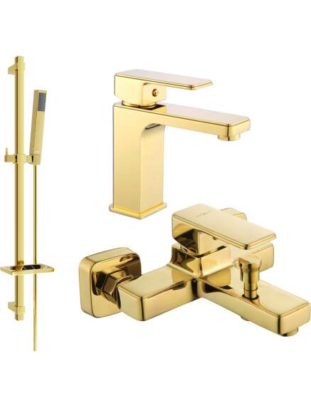 Specyfikacja produktu:Materiał baterii umywalkowej: Mosiądz Wykończenie: Złoty Głowica: Ceramiczna Perlator: Tak Wysokość: 160 mm Zasięg wylewki: 160 mm Materiał baterii wannowej: Mosiądz Wykończenie: Złoty Głowica: Ceramiczna Perlator: Tak Zasięg wylewki: 140 mm Materiał drążka: Stal nierdzewna, ABS Wykończenie drążka: Złoty Wysokość: 800 mm Szerokość drążka: 22 mm Odległość od ściany: 160 mm Mydelniczka Przesuwny uchwyt na słuchawkę Regulowane uchwyty montażowe Materiał słuchawki: Tworzywo sztuczne Wykończenie słuchawki: Złoty Ilość funkcji: 1 Wysokość słuchawki: 215 mm Szerokość słuchawki: 30 mm Materiał wąż: PVC Wykończenie węża: Złoty Długość węża: 150 cm Mosiężne końcówki Gładka powierzchnia ułatwia utrzymanie w czystości Obrotowe końcówki zapobiegają skręcaniu Elastyczny materiał wytrzymały na rozciąganie oraz zginanie |
