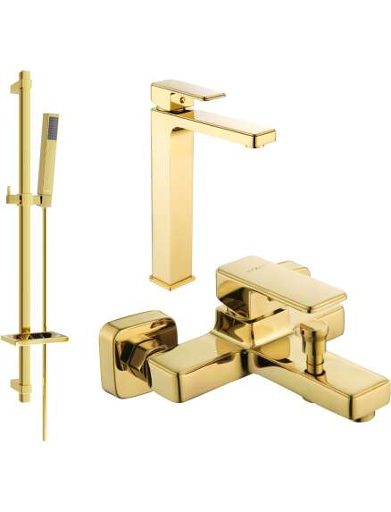 Specyfikacja produktu:Materiał baterii umywalkowej: Mosiądz Wykończenie: Złoty Głowica: Ceramiczna Perlator: Tak Wysokość: 290 mm Zasięg wylewki: 200 mm Materiał baterii wannowej: Mosiądz Wykończenie: Złoty Głowica: Ceramiczna Perlator: Tak Zasięg wylewki: 140 mm Materiał drążka: Stal nierdzewna, ABS Wykończenie drążka: Złoty Wysokość: 800 mm Szerokość drążka: 22 mm Odległość od ściany: 160 mm Mydelniczka Przesuwny uchwyt na słuchawkę Regulowane uchwyty montażowe Materiał słuchawki: Tworzywo sztuczne Wykończenie słuchawki: Złoty Ilość funkcji: 1 Wysokość słuchawki: 215 mm Szerokość słuchawki: 30 mm Materiał wąż: PVC Wykończenie węża: Złoty Długość węża: 150 cm Mosiężne końcówki Gładka powierzchnia ułatwia utrzymanie w czystości Obrotowe końcówki zapobiegają skręcaniu Elastyczny materiał wytrzymały na rozciąganie oraz zginanie |