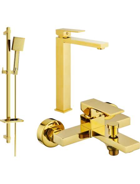 Specyfikacja produktu:Materiał baterii umywalkowej: Mosiądz Wykończenie: Złoty Głowica: Ceramiczna Perlator: Tak Wysokość: 293 mm Zasięg wylewki: 160 mm Materiał baterii wannowej: Mosiądz Wykończenie: Złoty Głowica: Ceramiczna Perlator: Tak Zasięg wylewki: 168,3 mm Materiał drążka: Stal nierdzewna, ABS Wykończenie drążka: Złoty Wysokość: 800 mm Szerokość drążka: 22 mm Odległość od ściany: 160 mm Mydelniczka Przesuwny uchwyt na słuchawkę Regulowane uchwyty montażowe Materiał słuchawki: Tworzywo sztuczne Wykończenie słuchawki: Złoty Ilość funkcji: 1 Wysokość słuchawki: 225 mm Szerokość główki: 85 mm Materiał wąż: PVC Wykończenie węża: Złoty Długość węża: 150 cm Mosiężne końcówki Gładka powierzchnia ułatwia utrzymanie w czystości Obrotowe końcówki zapobiegają skręcaniu Elastyczny materiał wytrzymały na rozciąganie oraz zginanie |