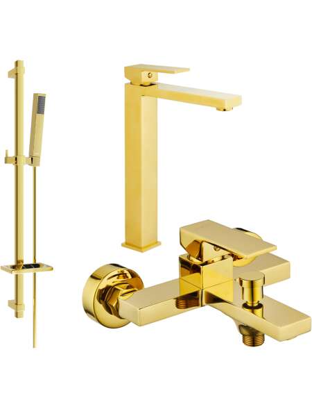 Specyfikacja produktu:Materiał baterii umywalkowej: Mosiądz Wykończenie: Złoty Głowica: Ceramiczna Perlator: Tak Wysokość: 293 mm Zasięg wylewki: 160 mm Materiał baterii wannowej: Mosiądz Wykończenie: Złoty Głowica: Ceramiczna Perlator: Tak Zasięg wylewki: 168,3 mm Materiał drążka: Stal nierdzewna, ABS Wykończenie drążka: Złoty Wysokość: 800 mm Szerokość drążka: 22 mm Odległość od ściany: 160 mm Mydelniczka Przesuwny uchwyt na słuchawkę Regulowane uchwyty montażowe Materiał słuchawki: Tworzywo sztuczne Wykończenie słuchawki: Złoty Ilość funkcji: 1 Wysokość słuchawki: 215 mm Szerokość słuchawki: 30 mm Materiał wąż: PVC Wykończenie węża: Złoty Długość węża: 150 cm Mosiężne końcówki Gładka powierzchnia ułatwia utrzymanie w czystości Obrotowe końcówki zapobiegają skręcaniu Elastyczny materiał wytrzymały na rozciąganie oraz zginanie |