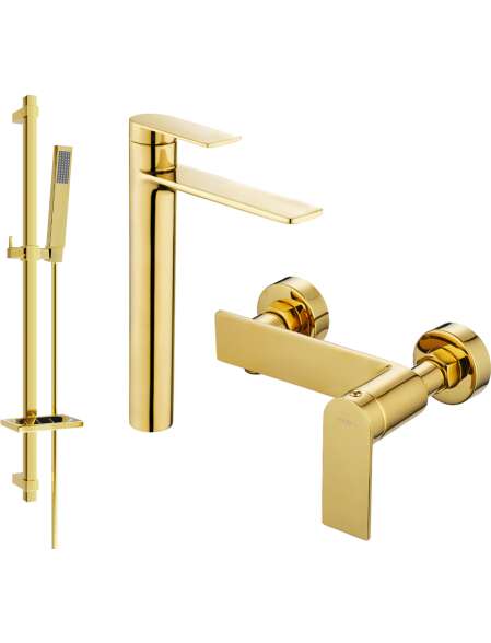 Specyfikacja produktu:Materiał baterii umywalkowej: Mosiądz Wykończenie: Złoty Głowica: Ceramiczna Perlator: Tak Wysokość: 297 mm Zasięg wylewki: 157 mm Materiał baterii prysznicowej: Mosiądz Głowica: Ceramiczna Wykończenie: Złoty Materiał drążka: Stal nierdzewna, ABS Wykończenie drążka: Złoty Wysokość: 800 mm Szerokość drążka: 22 mm Odległość od ściany: 160 mm Mydelniczka Przesuwny uchwyt na słuchawkę Regulowane uchwyty montażowe Materiał słuchawki: Mosiądz Wykończenie słuchawki: Złoty Ilość funkcji: 1 Wysokość słuchawki: 200 mm Szerokość główki: 35 mm Materiał wąż: PVC Wykończenie węża: Złoty Długość węża: 150 cm Mosiężne końcówki Gładka powierzchnia ułatwia utrzymanie w czystości Obrotowe końcówki zapobiegają skręcaniu Elastyczny materiał wytrzymały na rozciąganie oraz zginanie |