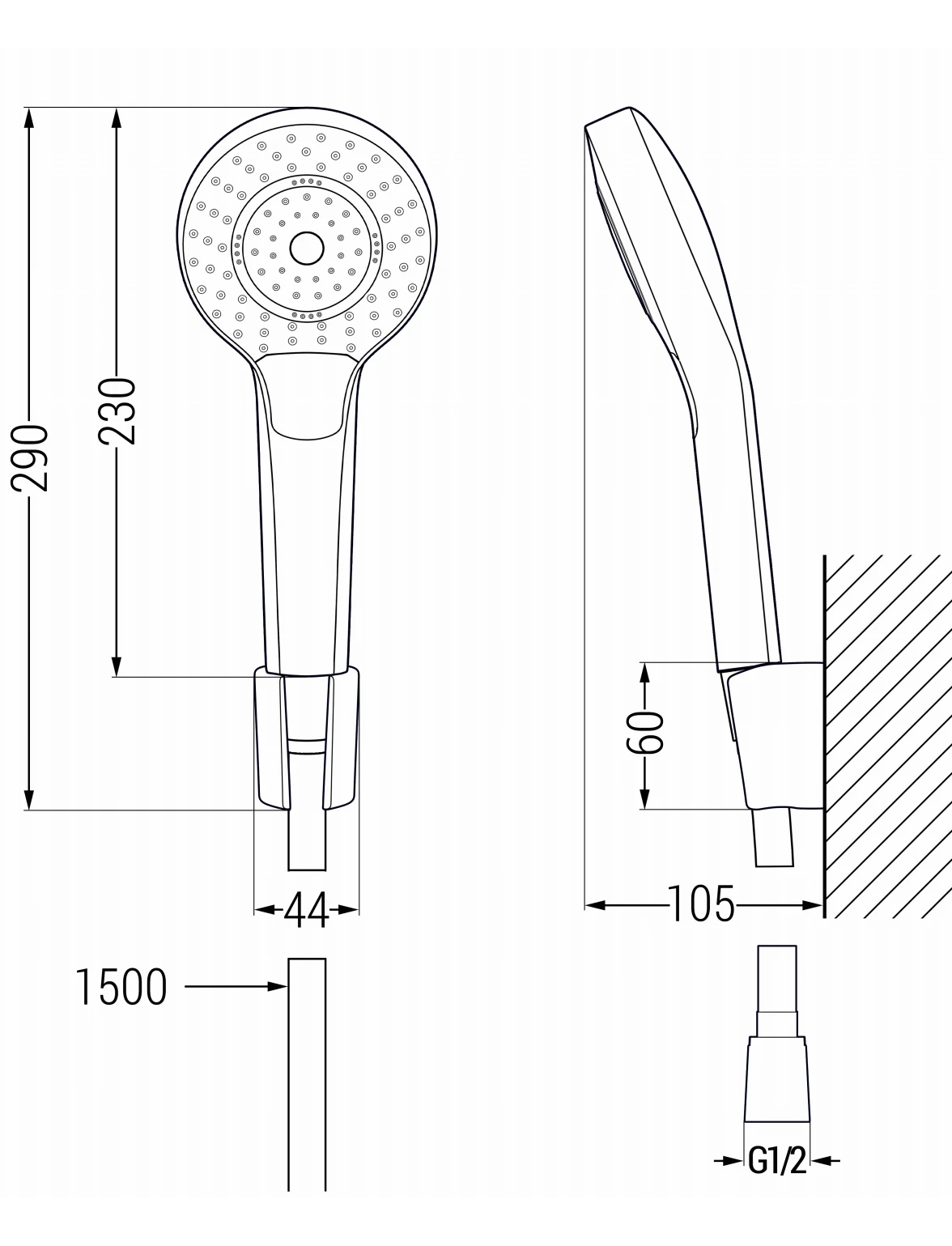 | Specifikācijas: Austiņu materiāls: plastmasa Austiņu Krāsa: hroma/balta ‚Y Funkciju skaits: 3 Savienojums: G 1/2" Austiņu augstums: 230 mm Galvas izmēri: Гё108 mm Roktura materiāls: plastmasa Roktura Krāsa: hroms Montāžas veids : Siena Roktura izmēri: 60x44 mm Attālums no sienas : 42 mm Caurules materiāls: PVC p> Krāsa: hroms Garums: 150 cm Savienojums: 1/2 "< / p > Misiņa tapas Gluda virsma ērtai tīrīšanai Rotējošas tapas, lai novērstu sagriešanos p > Elastīgs materiāls, izturīgs pret stiepšanos un locīšanu < br /> |