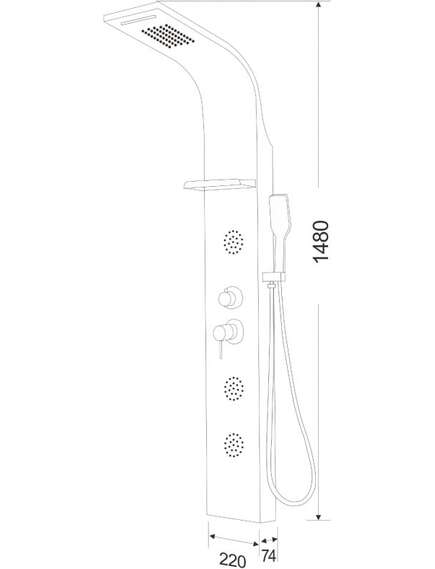 Specyfikacja produktu:Materiał: Stal nierdzewna Kolor: Biały Ilość funkcji: 3 Praktyczna półka na kosmetyki Słuchawka prysznicowa Wąż z osłoną ze stali nierdzewnej 150 cm Dysze silikonowe Anti-Calc ułatwiają usuwanie kamienia |