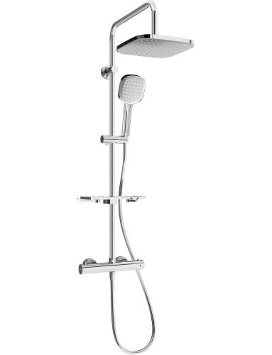 Specyfikacja produktu:Materiał kolumny: Tworzywo sztuczne, ABS Wykończenie kolumny: Chrom Wysokość: 970 mm Szerokość kolumny: 22 mm Odległość od ściany: 400 mm Mydelniczka Przesuwny uchwyt na słuchawkę Regulowane uchwyty montażowe Materiał deszczownicy: Tworzywo sztuczne Wykończenie deszczownicy: Chrom Rozmiar deszczownicy: 230x230 mm Materiał słuchawki: Tworzywo sztuczne Wykończenie słuchawki: Chrom Ilość funkcji: 1 Materiał węża: PVC Wykończenie węża: Chrom Długość węża: 150 cm Mosiężne końcówki Gładka powierzchnia ułatwia utrzymanie w czystości Obrotowe końcówki zapobiegają skręcaniu Elastyczny materiał wytrzymały na rozciąganie oraz zginania Materiał baterii: Korpus mosiądz Wykończenie baterii: Chrom Głowica: Termostatyczna Przyłącze: G3/4" (góra) oraz G1/2" (dół) Rostaw przyłącza: 150 mm Blokada gorącej wody przy 38° C |