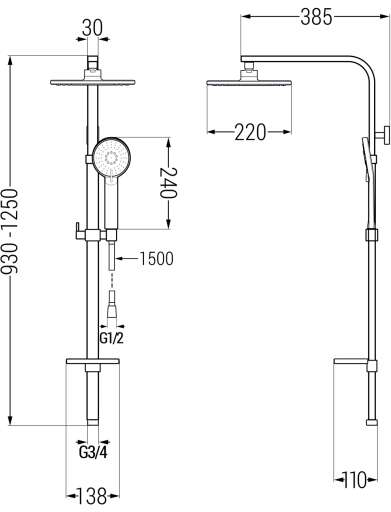 Specyfikacja produktu:Materiał kolumny: Tworzywo sztuczne, ABS Wykończenie kolumny: Złoty Wysokość: 930-1250 mm Szerokość kolumny: 30 mm Odległość od ściany: 385 mm Przyłącze: G 3/4" Mydelniczka Przesuwny uchwyt na słuchawkę Regulowane uchwyty montażowe Materiał deszczownicy: Tworzywo sztuczne Wykończenie deszczownicy: Złoty Rozmiar deszczownicy: ø220 mm Materiał słuchawki: Tworzywo sztuczne Wykończenie słuchawki: Złoty Ilość funkcji: 3 Materiał węża: PVC Wykończenie węża: Złoty Długość węża: 150 cm Mosiężne końcówki Gładka powierzchnia ułatwia utrzymanie w czystości Obrotowe końcówki zapobiegają skręcaniu Elastyczny materiał wytrzymały na rozciąganie oraz zginania |