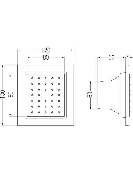 | Produkta specifikācija: Materiāls: Misiņš: Tips: Iebūvējamie sāni Krāsa : В Melns Izmēri: 130 x 130 mm Attālums no sienas: 10 cm Standarta savienojums : G 1/2 " < p> Sprauslas virsma ir izturīga pret aptraipīšanu un korozijuAnti-Calc silikona sprauslas vieglai atkaļķošanai |