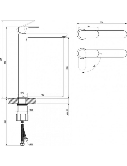 EL 015.01CR Wash. tap BeCool 335 mm w/o pop-up waste, chrome
