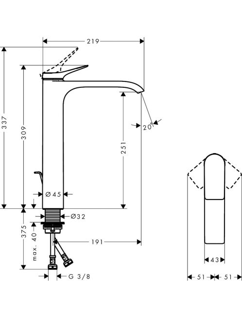 Hansgrohe Vivenis 250 izlietnes maisītājs, paaugstināts, ar pop-up, hroms - gab.