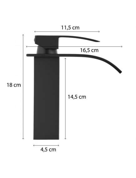 ✔ Vienas sviras izlietnes jaucējkrāns. Fiksēta snīpis ar ūdenskrituma efektu. Akumulatora korpuss ir izgatavots no misiņa.