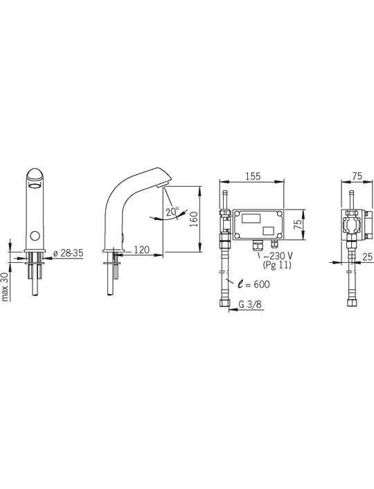 Bezkontakta izlietnes krāns iepriekš sajauktam ūdenim. Fiksēta tīkla elektroenerģijas (230 V) barošana. Atpazīšanas diapazonu iestata pie jaucējkrāna uzstādīšanas ar baltas papīra lapas palīdzību. Jaucējkrāns ir arī pieejams ar 3, 6, vai 9 metri garu fotoelementa kabeli. 6100/36100/66100/9