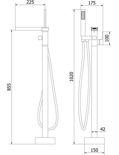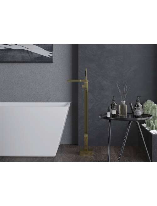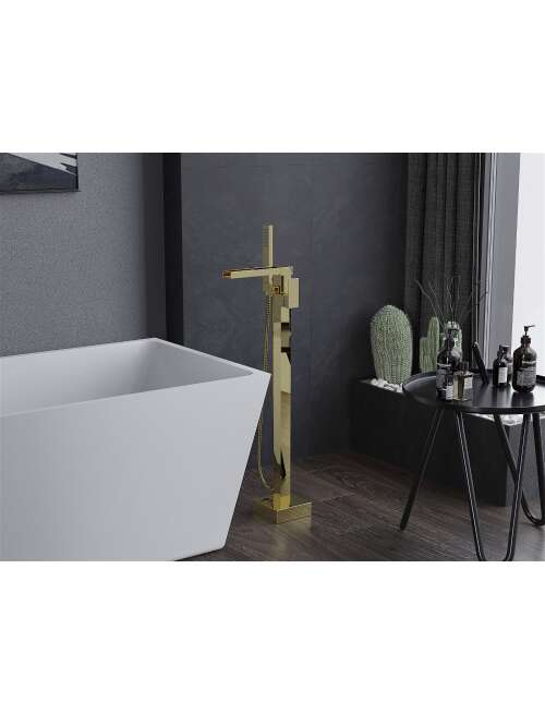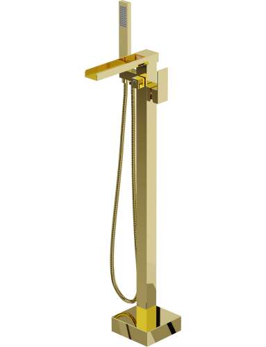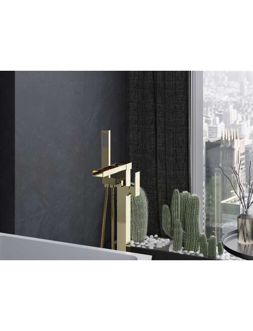 Dane techniczne:Materiał: Mosiądz Kolor: Złoty Głowica: Ceramiczna Perlator: Tak Słuchawka prysznicowa: 1-funkcyjna Wąż prysznicowy mosiężny: 150 cm Zasięg wylewki: 22,5 cm Wysokość baterii: 102 cm Wysokość wypływu wody: 85,5 cm |