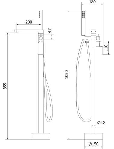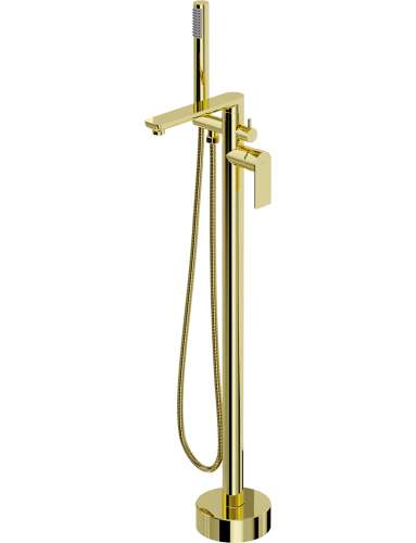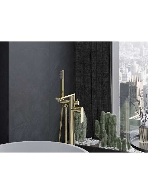 Dane techniczne: Materiał: Mosiądz Kolor: Złoty Głowica: Ceramiczna Perlator: Tak Słuchawka prysznicowa: 1-funkcyjna Wąż prysznicowy mosiężny: 150 cm Zasięg wylewki: 20 cm Wysokość baterii: 105 cm Wysokość wypływu wody: 85,5 cm |
