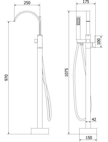 Dane techniczne:Materiał: Mosiądz Kolor: Czarny Głowica: Ceramiczna Perlator: Tak Słuchawka prysznicowa: 1-funkcyjna Wąż prysznicowy mosiężny: 150 cm Zasięg wylewki: 25 cm Wysokość baterii: 107,5 cm Wysokość wypływu wody: 97 cm |